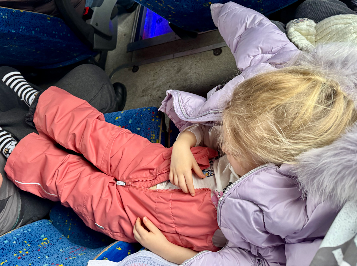 В аэропорту Ставрополя нам сразу предложили пойти в комнату матери и ребенка, и хоть там она довольно скучная, но перекусив самолетной едой и осмотрев скудный запас игрушек, Лиза снова уснула, уютно устроившись на кровати. Проснулась уже в автобусе, когда он преодолел больше половины пути, открыла глаза и радостно заявила: «Ура! Автобус!».