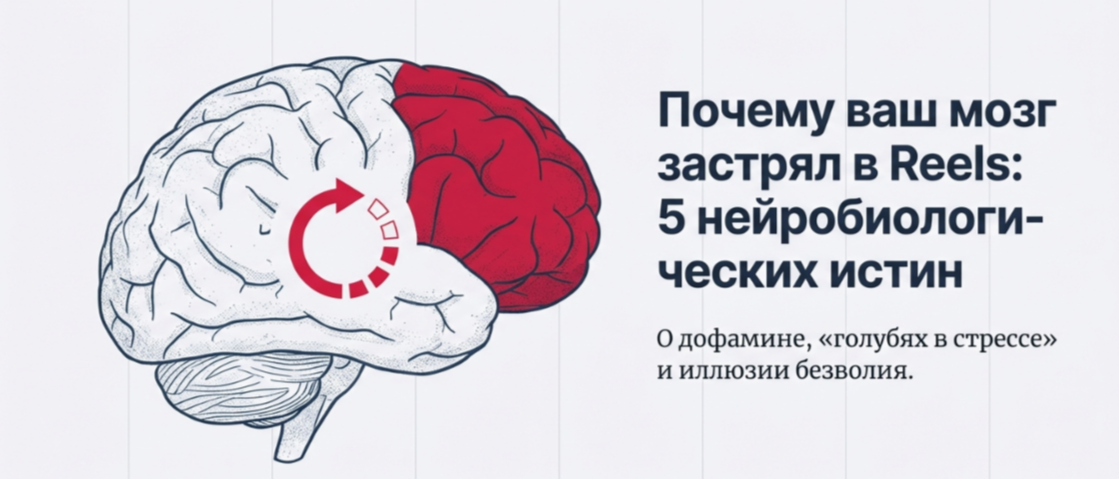 Полночь. Вы планировали лечь спать еще два часа назад, но большой палец продолжает методично смахивать экран вверх. Синие пиксели выжигают сетчатку, вы осознаете бессмысленность происходящего, но не можете просто встать и почистить зубы. Знакомо? Это состояние нейробиологи называют «личным отчаянием». Многие винят себя в лени или безволии. Однако наука утверждает: дело не в слабом характере, а в фундаментальных механизмах работы мозга. Наш бесконечный скроллинг — это нейробиологический детерминизм, заставляющий нас буквально «замирать» в цифровом пространстве. Существует опасный миф, что дофамин — это «гормон удовольствия». На самом деле, за наслаждение отвечают совсем другие вещества (эндоканнабиноиды и опиоиды). Дофамин нужен мозгу для двух целей: выделения значимости объекта и кодирования неожиданности. Главный секрет залипательных видео кроется в ошибке предсказания результата. Мозг выбрасывает мощную порцию нейромедиатора каждый раз, когда происходит что-то неожиданное, помечая э
