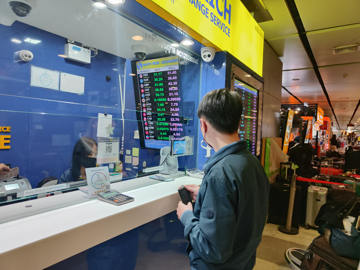 Когда пришли к багажной ленте, наши чемоданы уже ждали нас. Забрали их и пошли менять деньги американские на тайские. Конечно, спустились на -1 этаж в обменники, расположенные рядом со входом в метро. В каждый стояла небольшая очередь.