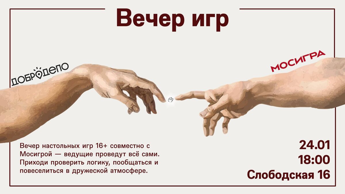 ✔ Настолки в компании без споров о правилах: всё объяснят и проведут ведущие ✔ Вечер вместе с «Мосигрой»: от подбора игры до финального подсчёта очков ✔ Можно приходить без опыта — ничего заранее знать не нужно, только желание играть ✔ Регистрация обязательна (места по записи) 📅 Когда: #24_января, 18:00 ⛳ Где: ДоброДепо, ул. Слободская, 16 💳 Стоимость: бесплатно по регистрации 📞 Регистрация: +7 909 857-15-20, @dobrodepo_info 👉 Афиша Хабаровска. Куда сходить, экскурсии