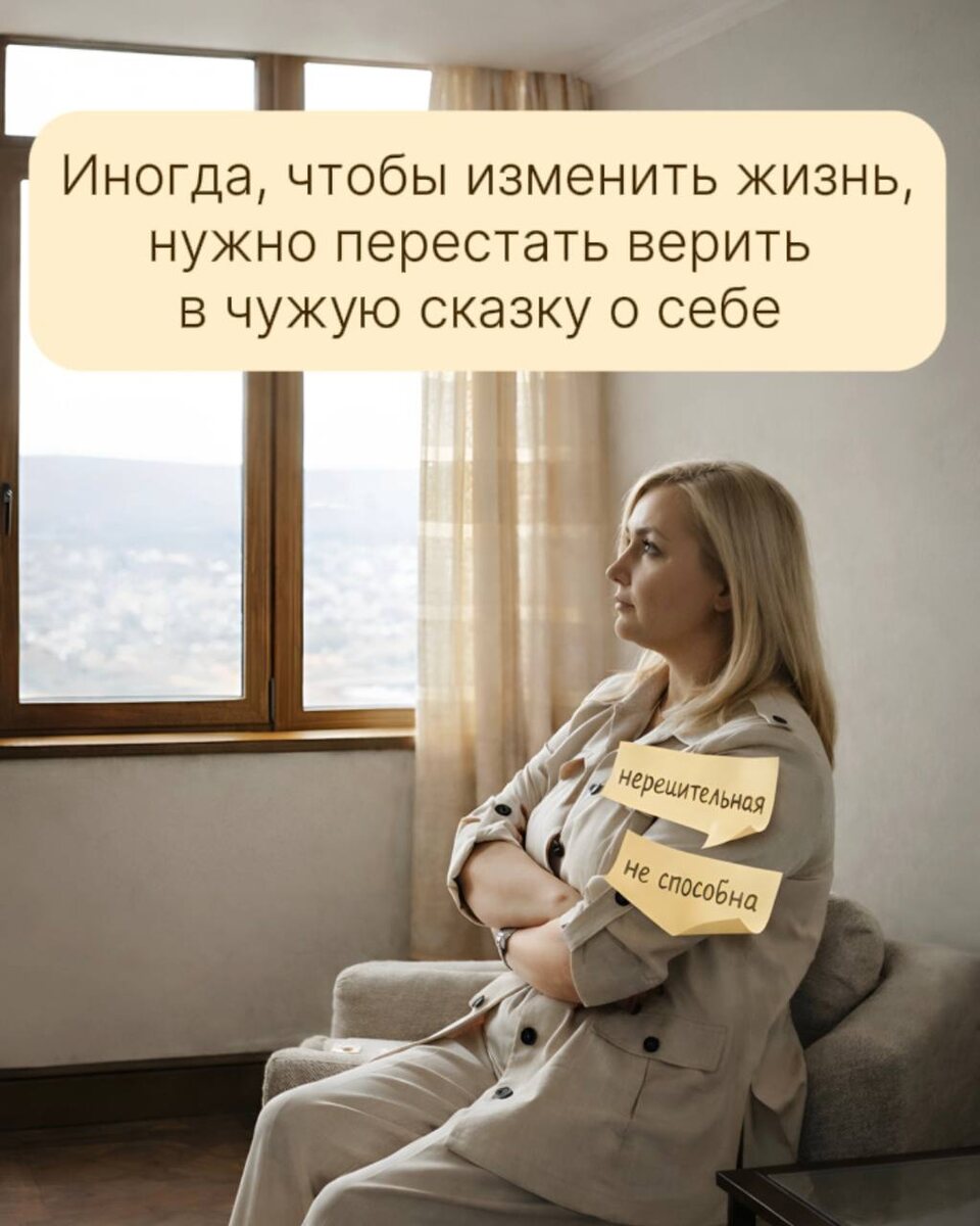Доброе утро, друзья! Со временем у каждого из нас складывается представление о себе. Кто я, на что способен, а что «точно не про меня». Но эти представления редко рождаются изнутри. Чаще их формируют родители, учителя, тренер, одноклассники, друзья, первые начальники, партнёры. Кто-то когда-то сказал, что: 🔹«Ты не спортивная» 🔹«Ты слишком застенчивая» 🔹«У тебя руки не из того места» 🔹«Ты не для этого создана» Мы поверили 😭 А дальше мозг начал делать то, что умеет лучше всего, искать подтверждения. Так чужие слова постепенно превращаются в наши установки. (Рекомендую мультфильм «Головоломка»👌) А установки в решения, которые мы даже не осознаём. Мы начинаем жить в соответствии с образом, который о себе усвоили. Например: 🔹«Я не умею готовить» ▶️ даже не пробую. 🔹«Я не из тех, кто рискует» ▶️не рассматриваю новые возможности. 🔹«Со мной скучно» ▶️ отказываюсь от встреч. Очень часто такие истории о себе появляются из-за ⤵️ ▶️ случайного эпизода ▶️ одной неудачи ▶️ родительск