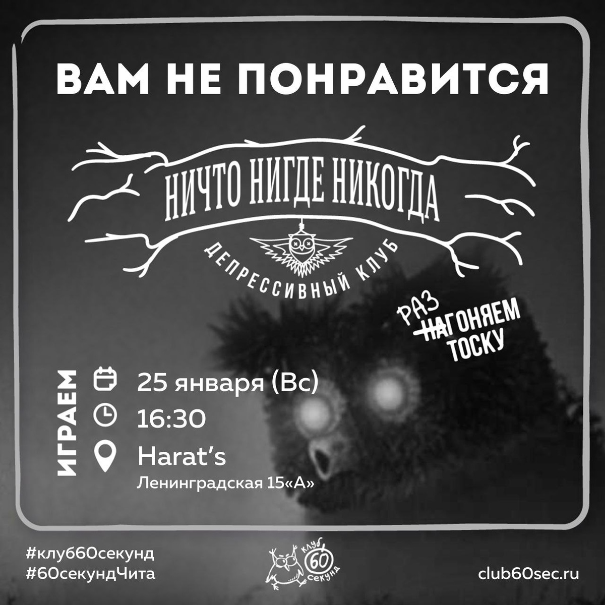 Скучные вопросы, унылая музыка, проигравшие. Организаторы предлагают разделить всеобщую тоску на унылом мероприятии. 🕐25 января, 16:30 📍Harat's, Ленинградская 15, а 🪙400 рублей 🔑запись по ссылке. Если у вас нет команды, то организаторы найдут её на месте. #Новости Предложить публикацию:@zabkulisye_bot