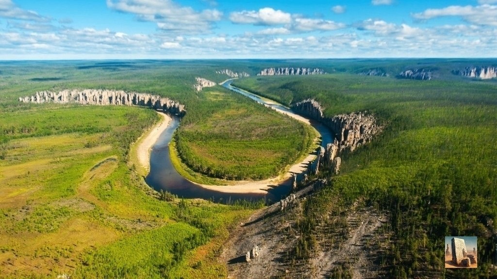 В Якутии, в 200 км от столицы вверх по течению реки Лены, находится гряда скалистых зубцов. Их высота достигает 200 метров, а протянулись они на несколько километров. Возникли столбы около 400 тысяч лет назад, но возраст горных пород, из которых они сложены, — больше 500 миллионов лет. Тогда скалистый берег был подводным рифом, на котором обитали различные моллюски, ракообразные и огромное количество скелетных животных. Из-за обилия новых видов этот период в истории называют кембрийским взрывом. Благодаря современному климату останки древних обитателей хорошо сохранились. Здесь также можно увидеть и более поздние артефакты — наскальные рисунки первых людей, древние стоянки и святилища. А рядом с Ленскими столбами находятся масштабные дюны тукуланы — остатки реликтовой пустыни. Терра инкогнита | Неизвестная земля