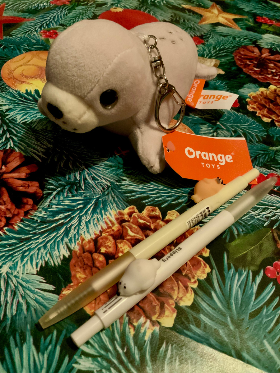 Я люблю тюленей и у меня есть уже как плюшевые представители этого вида, так и фигурки :) Но где-то неделю назад я нашла еще и таких в одном из канцелярских магазинов города :)) Это еще один плюшевый тюлень, а также две шариковые ручки. Тюлень славный и ручки неплохие. Чернила в них бледноваты, но пишут они мягко, не смазываются и могут использоваться совместно с цветными карандашами, другими шариковыми ручками, гелевыми ручками и маркерами, фломастерами, акварелью. Чернила не размываются водой, что очень хорошо :))) Я уже нарисовала несколько скетчей ими и работают они верно и надежно.