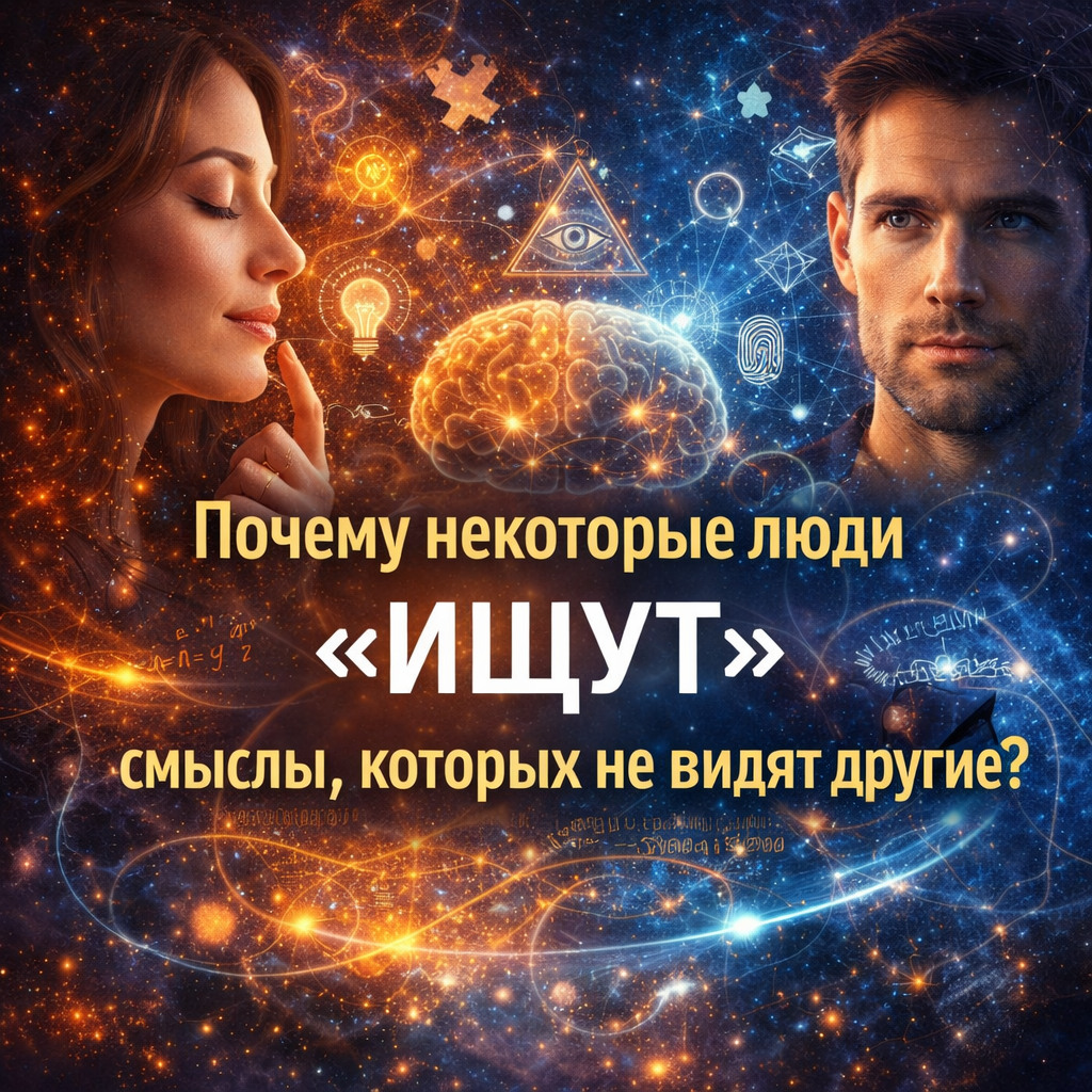 Наверняка ты встречал таких людей. Они видят скрытые намеки в событиях, находят закономерности там, где другие видят случайность, задают вопросы, которые большинству даже не приходят в голову. Одни считают их слишком впечатлительными. Другие - странными. Третьи - философами или визионерами. Но на самом деле за этим стоит вполне объяснимая работа мозга. И речь не о мистике, а о нейробиологии и психологии восприятия. Человеческий мозг эволюционировал не для объективного познания мира, а для выживания. Его главная задача - находить закономерности как можно быстрее. Даже если их нет. Лучше сто раз ошибочно увидеть хищника в кустах, чем один раз его не заметить. Именно поэтому мозг склонен к так называемому апофеническому мышлению - поиску связей между несвязанными событиями. У всех людей этот механизм есть. Но выражен он по-разному. Исследования показывают, что люди с развитым абстрактным мышлением и высокой чувствительностью к контексту чаще ищут скрытые смыслы. Их мозг активнее работает