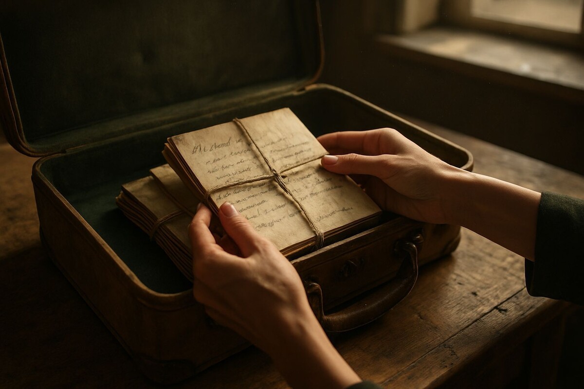 Анна сидела в тишине, поглаживая потёртую кожу. Чемодан стоял перед ней, наполненный теперь не вещами, а голосами. Они звучали в ней — твёрдый голос солдата, взволнованный голос студентки, растерянный голос эмигранта.