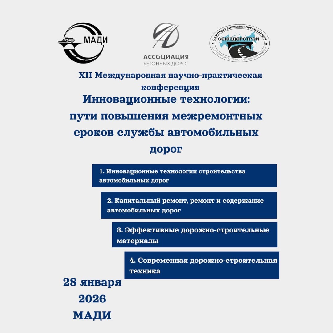 Если вы тоже планируете быть на этих площадках, давайте обязательно пообщаемся оффлайн! 📌28 января — XII Международная научно-практическая конференция «Инновационные технологии: пути повышения межремонтных сроков службы автомобильных дорог» на площадке Московский автомобильно-дорожный государственный технический университет (МАДИ). Планируется профессиональная дискуссия о современном научном подходе в дорожной отрасли. Будем участвовать в диалоге, присоединяйтесь! 📌29 января — конференция и выставка «Дорожное строительство в России. Дорожно-строительная техника, оборудование и материалы. Новые вызовы и возможности» в Российский университет транспорта (МИИТ). Поговорим о том, как отрасль меняется в современных реалиях: автоматизация, новые материалы и отечественные решения. Обязательно заглядывайте на наш стенд номер 6! ❤️ ⚡️Би Эй Ви - Новости компании⚡️