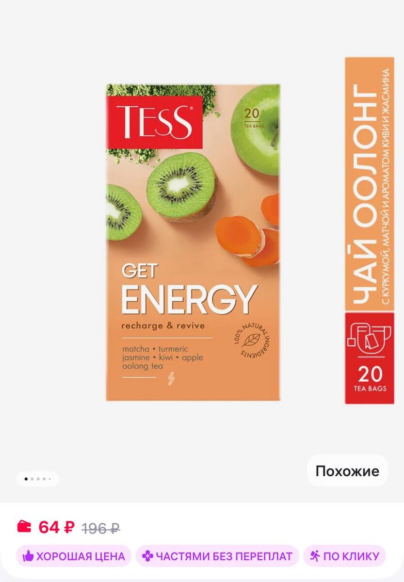 😀😀🤑Tess Чай оолонг GET ENERGY, в пакетиках, 20 шт
