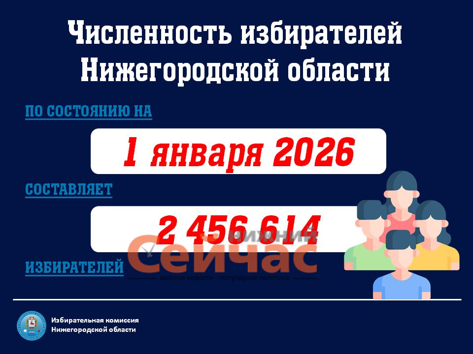 Численность избирателей в Нижегородской области на 1 января 2026 года составила 2 456 614 человек. Об этом сообщила избирательная комиссия Нижегородской области. Более миллиона из них (1 086 194 человека), проживают в Нижнем Новгороде. В избиркоме напомнили, что численность избирателей устанавливается дважды в год – 1 января и 1 июля, а право голоса имеют граждане России, достигшие 18 лет на день выборов. Отметим, на 1 июля 2025 года в Нижегородской области проживало 2 462 755 избирателей (стало меньше на 6 141 человек). Напомним, ранее была Обновлена схема нижегородских избирательных округов для выборов в региональное Законодательное собрание. Фото: избирком