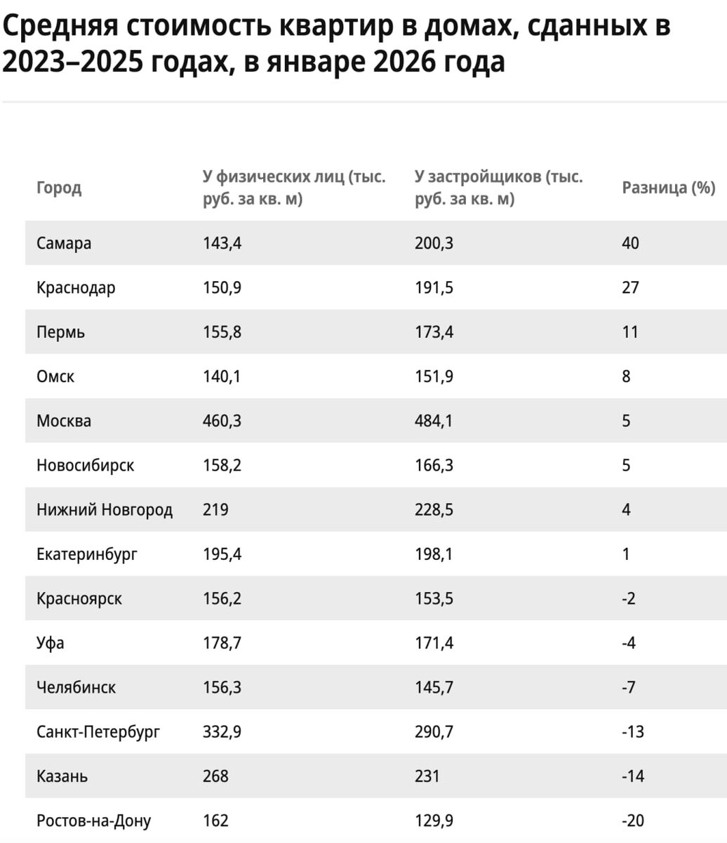 🪖 Квартиры от застройщиков в сданных домах всего на 6% дороже, чем у инвесторов — Ъ