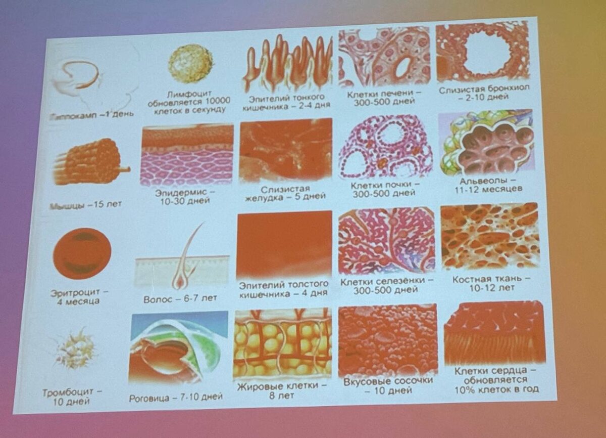 Обрати внимание на то, через сколько времени обновляются клетки разных органов в твоем организме