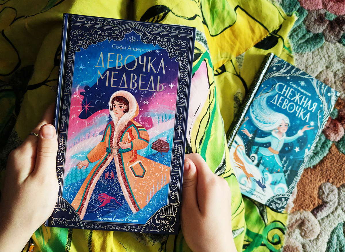 В издательстве МИФ вышло несколько детских книг в серии «МИФ. Новогодние истории». Для чтения с девятилетней дочкой я выбрала две книги английской писательницы Софи Андерсон «Снежная девочка» и «Девочка-медведь». Про первую книгу я писала ранее, она понравилась дочке, но не понравилась мне. А вот вторая книга — «Девочка-медведь» впечатлила нас обеих. Это сказка — по классической схеме «путешествие героя», где есть зов, сверхъестественная помощь, стражи, помощники, испытания, соблазны, трансформация, награда и возвращение домой. Книги писательницы основаны на фольклоре, и в «Девочке-медведь» собраны самые разные мифы, сказки и герои. В самой сказке персонажи рассказывают друг другу легенды, получается маленькие сказки вплетены в повествование основной истории. Все это любопытно закручено и со всем этим приходится разбираться главной героине. Девочку зовут Янка-медведь, ей что-то около 12-13 лет. Она большая, высокая и сильная. Мало кто знает, но ее маленькую нашла и забрала женщина-трав