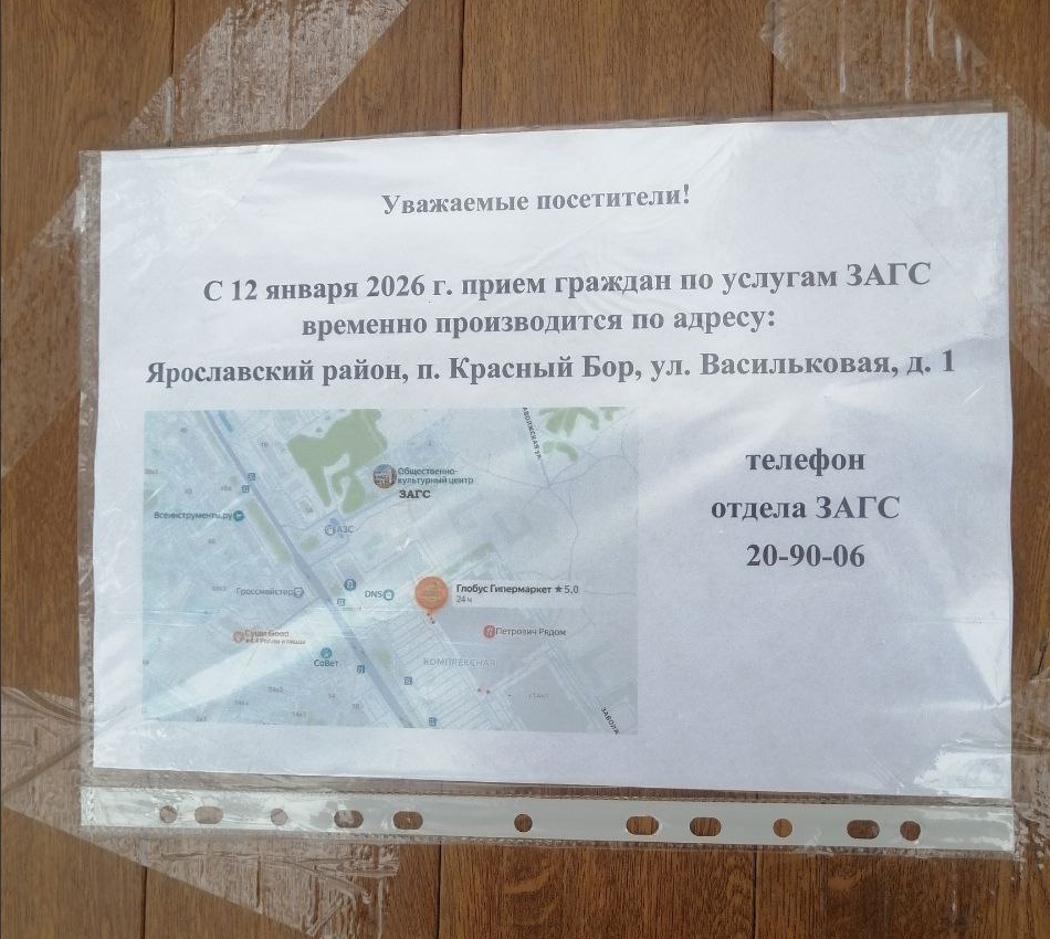 Власти говорят о том, что это временная мера. Заволновались жители Заволжского района Ярославля. Они заметили объявление на входе в районный отдел ЗАГС, предупреждавшее, что с 12 января приём горожан в Заволжском районе Ярославля отменился. За услугами людям предложили ехать в прилегающий к городу посёлок Красный Бор. «А почему закрыли Заволжский отдел ЗАГС в Ярославле? Прекрасный отдел был и отличные специалисты», — посетовал автор публикации в сетях. Ответ на вопрос пришел с официального аккаунта Ярославской области. «В настоящее время государственные услуги в отделе ЗАГС оказываются только тем гражданам, которые записались на приём ранее. В соответствии с федеральным законодательством услуги в сфере ЗАГС оказываются по экстерриториальному принципу (обратиться можно в любой ОЗАГС области независимо от места жительства или пребывания», — заявили в ответе ярославне. Также жителям района принесли извинения, где ещё раз подчеркнули, что это «временные неудобства». А при возникновении доп
