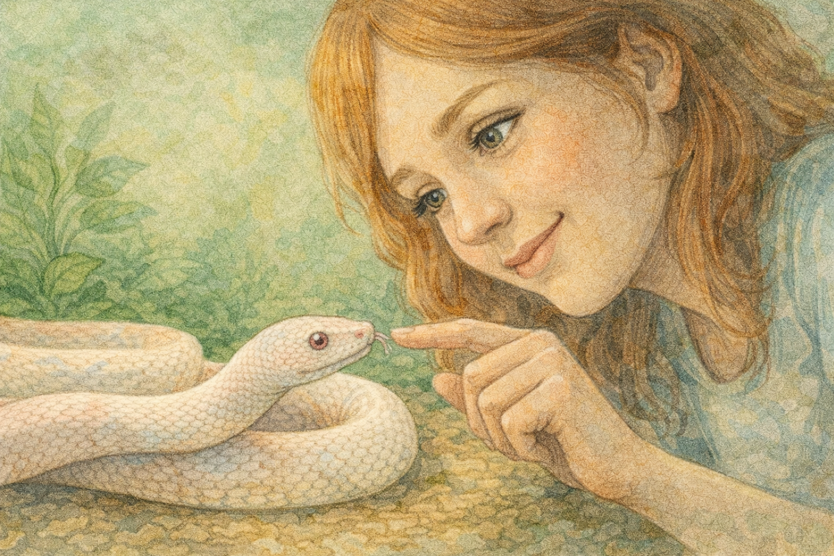 Когда человек видит почти полностью белую змею с розовыми или светло-серыми глазами, возникает ощущение чего-то необычного, «породистого», почти магического. Белые морфы: ⭐Белый цвет снижает страх.