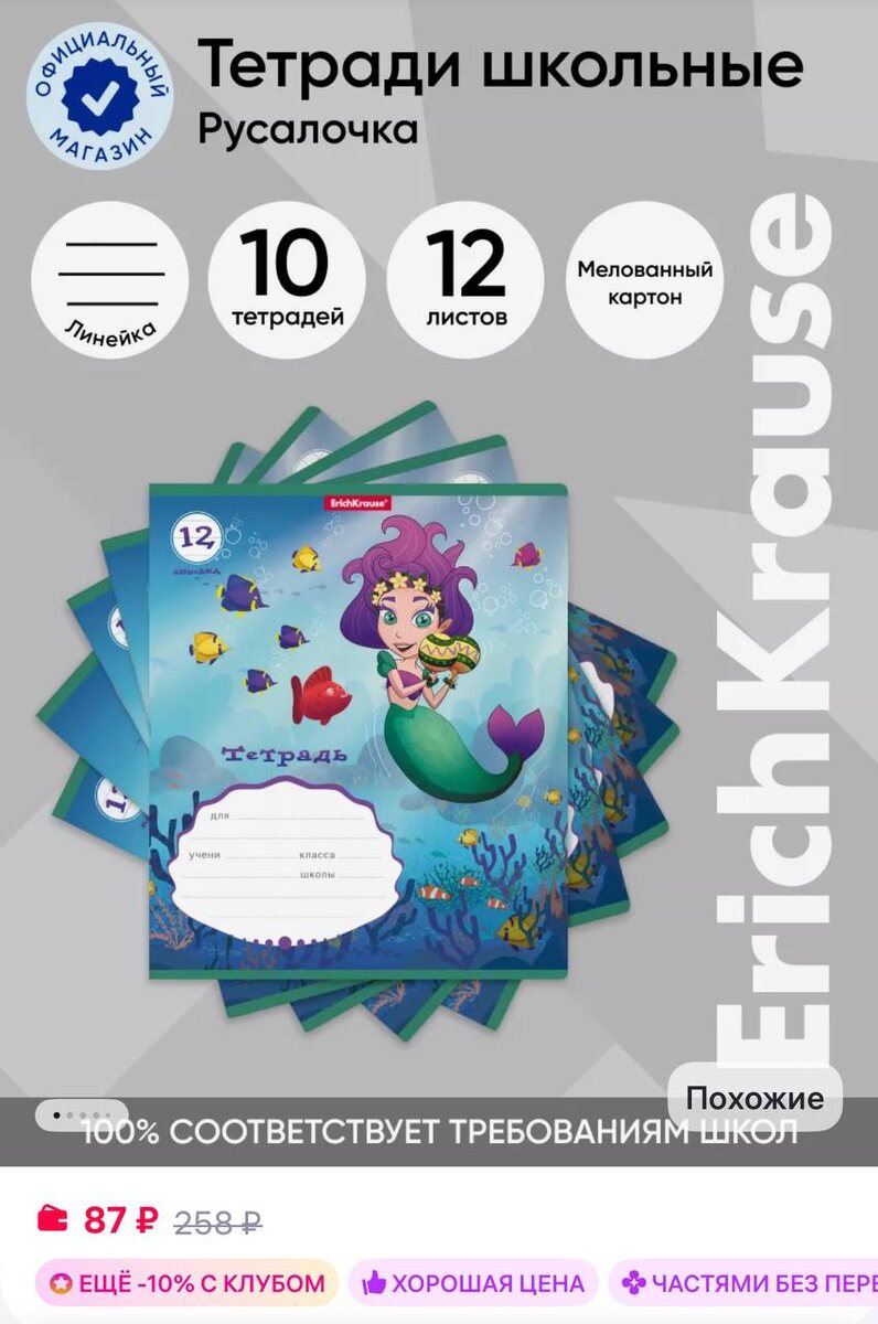 😀😀 10 шт ErichKrause Тетрадь в линейку Русалочка 12 листов