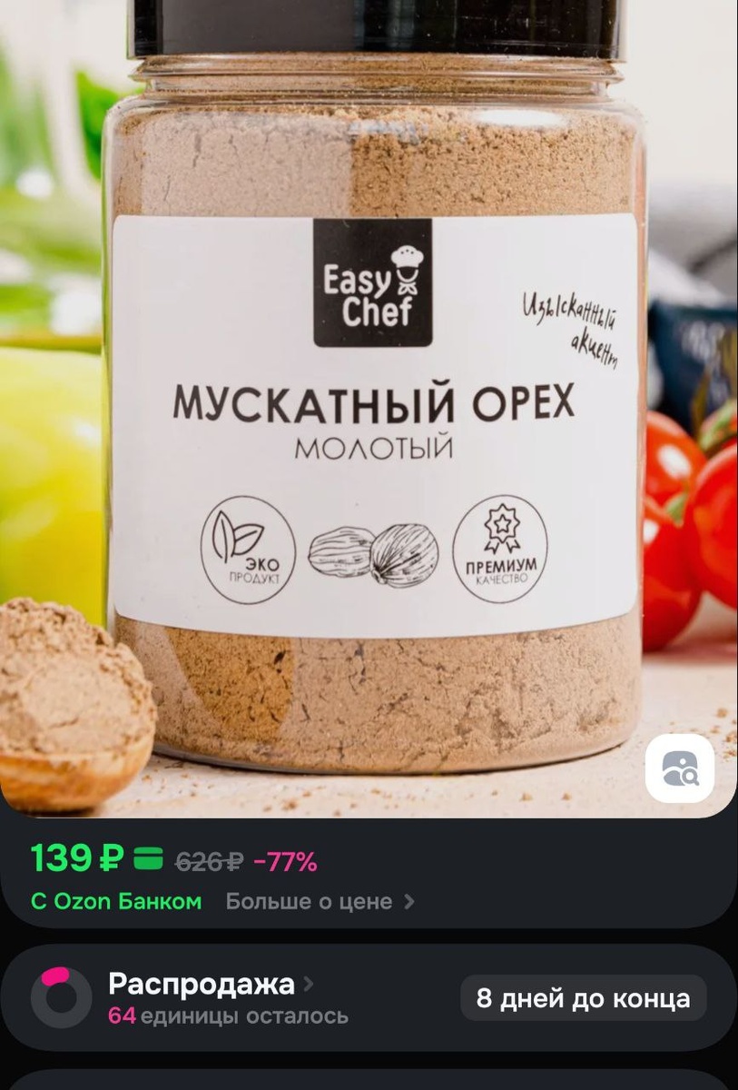 📦Мускатный орех натуральный молотый от EasyChef 150г. Ароматная специя и пряность, универсальная приправа, тертый мускатный орех, ароматная - 139р