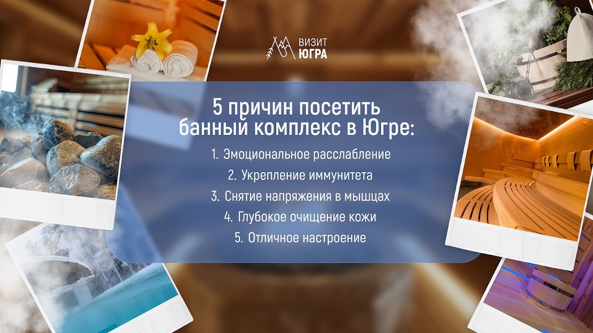 Отличный выбор для зимнего отдыха в Ханты-Мансийском округе – Югре — бани и банные комплексы. Здесь можно по-настоящему расслабиться, попариться с ароматным веником и снять усталость. Мы подготовили подборку интересных мест в ХМАО – Югре, где можно отдохнуть душой и телом. В Ханты-Мансийске стоит обратить внимание на «Чугасовские бани». Это современный комплекс, где объединили русскую баню, турецкий хаммам и финскую сауну. После парной можно поплавать в бассейне или заказать расслабляющие спа-процедуры: скрабы, массажи, ароматные мойки. Для отдыха с компанией или семьей здесь есть все: зона отдыха, бар, ресторан и детская игровая комната. Адрес: г. Ханты-Мансийск, ул. Тобольский тр-т, 2. Телефон: +7 (3467) 35‒00‒50. Недалеко от центра Ханты-Мансийска, всего в 15 минутах езды, находится банный комплекс «Печки&Веники». Его главное преимущество — расположение у леса и озера. Вы паритесь в настоящей русской бане на дровах, а из окна открывается вид на природу. На территории есть купель с г