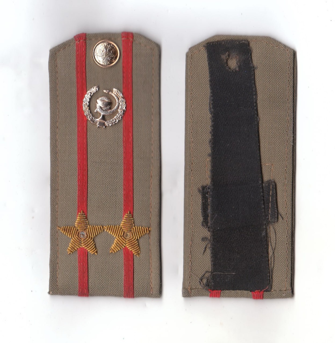 Съемные погоны подполковника медицинской службы образца 1994 года с вышитыми звездами крученой канителью.