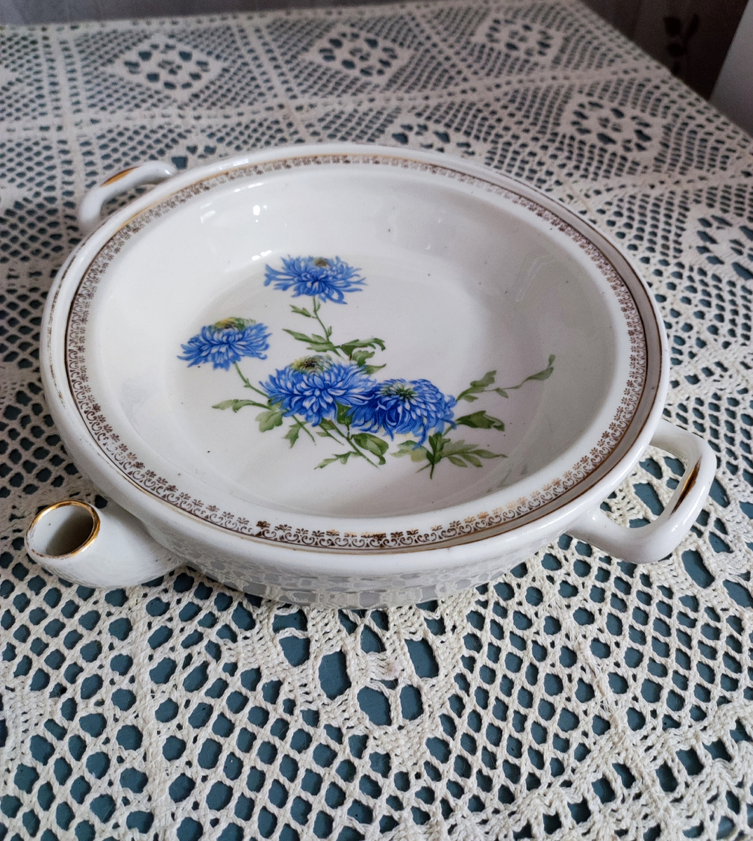Это тарелка под горячее, в отверстие наливали кипяток и еда дольше оставалась горячей.