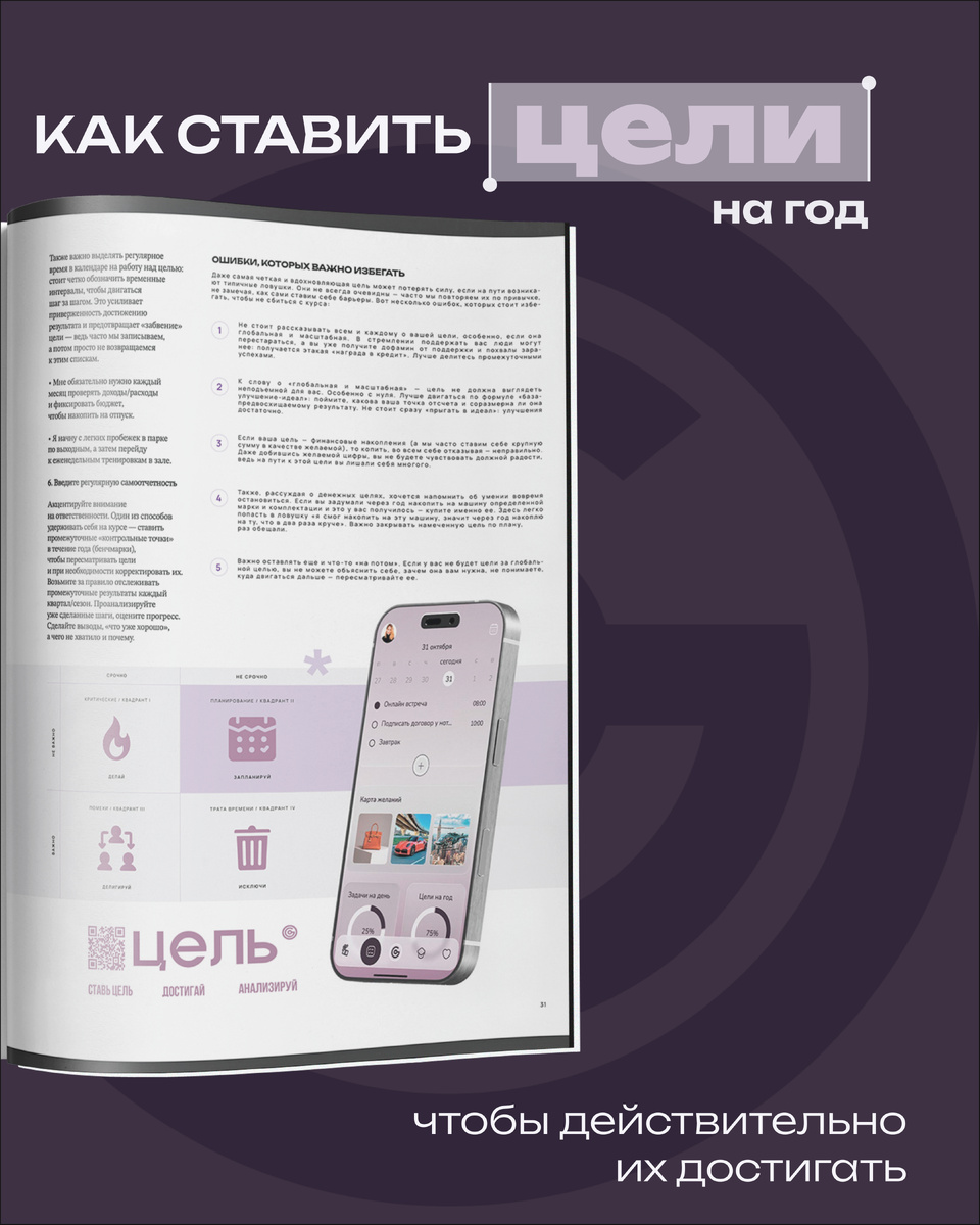 Неправильно сформулированные, чрезмерно амбициозные или напротив — незначительные цели могут демотивировать. Прежде всего цель должна быть личной и значимой, а не навязанной обществом или чужими ожиданиями. Более того, если цель слишком абстрактна или плохо структурирована, вы вряд ли будете к ней возвращаться: она так и останется «просто идеей». Читайте, с чего начать, а также применяйте проверенные подходы от коучей, бизнес-лидеров и экспертов — они помогут сделать постановку целей эффективной и вдохновляющей.