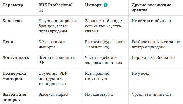 Без лозунгов — только факты. BHZ Professional — это честная альтернатива импортным и локальным брендам.