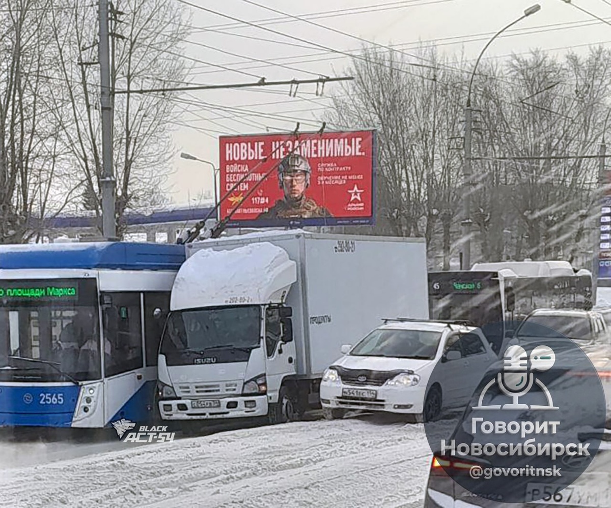 🚎🚚 Другие водители вынуждены объезжать участников аварии по трамвайным путям. Говорит Новосибирск