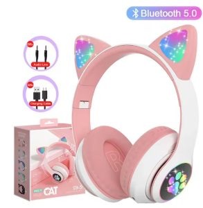 Одной из ключевых особенностей этих наушников с кошачьими ушками является встроенная подсветка. Именно она делает модель визуально привлекательной и сразу выделяет её среди обычных детских и подростковых наушников. Ушки подсвечиваются разноцветными LED-огнями в радужном режиме, и это не просто маркетинговый ход — для ребёнка или подростка такой элемент действительно превращает наушники в «вау-вещь», а не просто в устройство для звука.