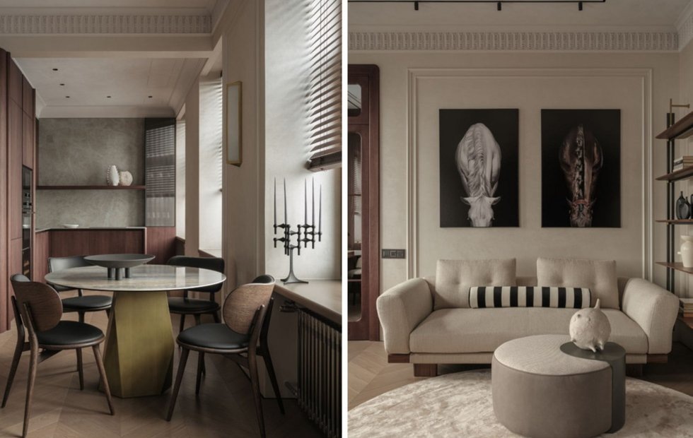 Этот интерьер вдохновляет своей историей, архитектурой и эстетикой Место: Санкт-Петербург Метраж: 75 кв. м Год постройки: 1830 Комнаты: 2 Cанузлы: 1 Дизайн: Beyond Design Стилист: Ирина Генделева Фото: Екатерина Титенко Заказчик хотел квартиру выходного дня для семьи и близких, своего рода личный пятизвездочный отель. Дизайнер Натали Beyond из студии Beyond Design для интерьера выбрала классическую основу с лепным декором и винтажной штукатуркой, отсылающими к историческому контексту города. Надстройкой к ней стали современные предметы мебели, света и декора. Изначально это была трехкомнатная квартира с отдельной кухней и раздельным санузлом. В квартире провели полную перепланировку, в результате которой получилась просторная кухня-гостиная-столовая открытой планировки, спальня с собственной гардеробной, и еще одна гардеробная в прихожей. Санузел объединили и оборудовали современной душевой зоной. Гуляя по историческому центру Петербурга, очень тяжело не влюбиться в отсылающие к европ