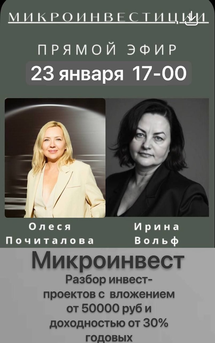 ❤️❤️❤️❤️❤️ Уже в эту пятницу в 17:00 МСК Проведём эфир по микро недвижимости. Расскажу про новые проекты и не очень новые, но ещё очень перспективные. Проведу эфир с партнёром, да уже чего там, с подружкой 🥰Олесей Почиталовой г. Воронеж. Отвечу на все вопросы, возражения, сомнения. А насмотренность и опыт у меня в этом направлении уже "дай бог". В связи с постоянными взломами прямых эфиров, ссылку будет высылать только в ЛС. Поэтому все, кто желает присутствовать, пишите "ХОЧУ". Но не забывайте заглянуть в ЛС. 🙂 В день эфира все получат.