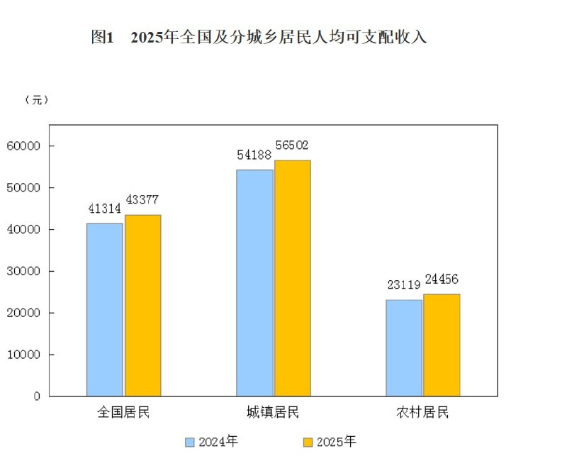 19 января 2026 года Национальное бюро статистики Китая опубликовало предварительные данные по ВВП за 2025 год в неизменных ценах. Показатель достиг 140 187,9 млрд юаней, увеличившись на 5% по сравнению с предыдущим годом. Располагаемый доход на душу населения также вырос на 5%, составив 43 377 юаней. Разрыв между городом и деревней продолжает медленно сокращаться: среднедушевой доход городских жителей составил 56 502 юаня (+4,3%), а сельских жителей — 24 456 юаней (+5,8%). На изображении синяя линия представляет 2024 год, а желтая — 2025 год. Три разные столбчатые диаграммы, слева направо, представляют собой средний показатель по стране, средний показатель для городских жителей и средний показатель для сельских жителей, все в юанях. Главным драйвером экономического роста стал мощнейший экспорт в 2025 году. Несмотря на спад в сфере недвижимости и отток иностранного капитала в Юго-Восточную Азию, Китай смог сохранить высокие темпы экспорта, во многом благодаря индустрии автомобилей на но