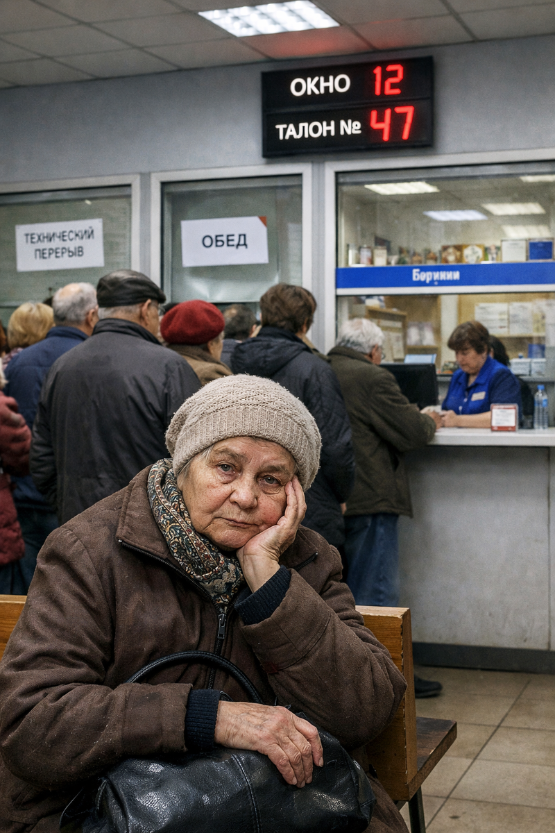 Тётя Галя ждала ещё сорок минут. Окно открылось. Снова очередь.