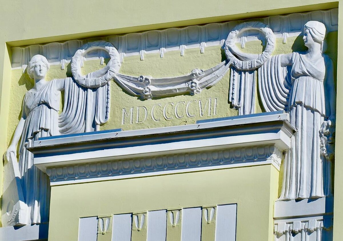 ? 📍ул. Малая Дмитровка, 6 Ответ скрыт на фасаде в виде римской цифры MDCCCCVIII Если расшифровать ее, используя традиционные значения — I=1, V=5, X=10, L=50, C=100, D=500, M=1000 — становится понятно, что это 1908 год. Это здание было возведено по проекту архитектора Иллариона Иванова-Шица. В архитектуре здания сочетаются черты модерна — например, маскароны с изображениями женских лиц и декоративная лепнина в форме завитков. Вместе с тем, здесь можно заметить и элементы классицизма, выраженные в лепных венках и барельефах с античными мотивами. Изначально особняк служил Домом купеческого собрания, где купцы устраивали деловые встречи и отдыхали — обедали и играли в карты. После революции купцов из здания выселили. Некоторое время здание занимали анархисты, превратившие его в политический клуб «Дом анархии». Однако большевики, не желая делиться властью, выгнали анархистов, применяя даже артиллерию, но здание устояло. С 1932 года в особняке стал располагаться Театр рабочей молодёж