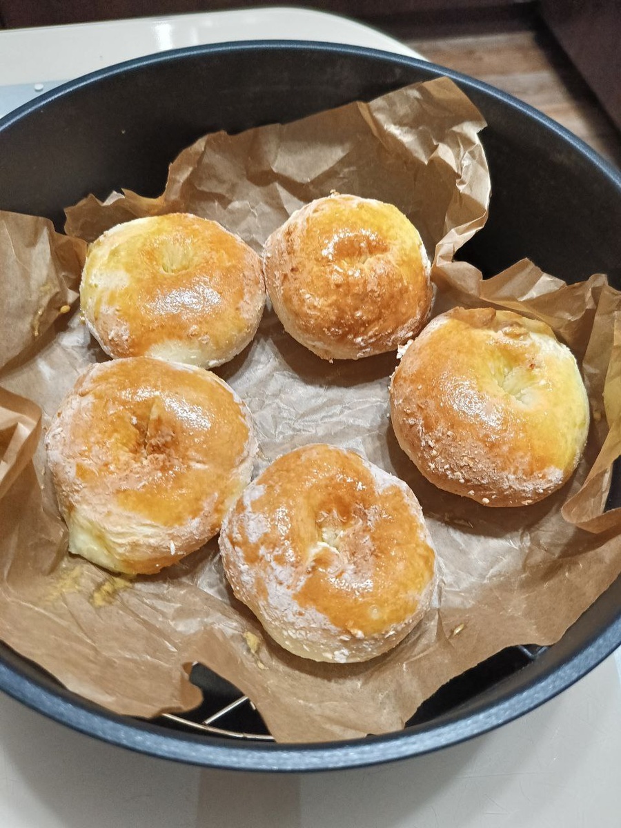 ... Ребята, это очень вкусно. Они конечно должны быть колечком, видимо ошиблась в форморке. 😅 Поднялись раза в 2,5. Рецепт простой, на завтрак супер альтернатива хлебу, ну если добавить сахар или топинг вкусная булочка к чаю. Естественно! Без масла, все в лучших традициях ПП, много белка и минимум заморочек.