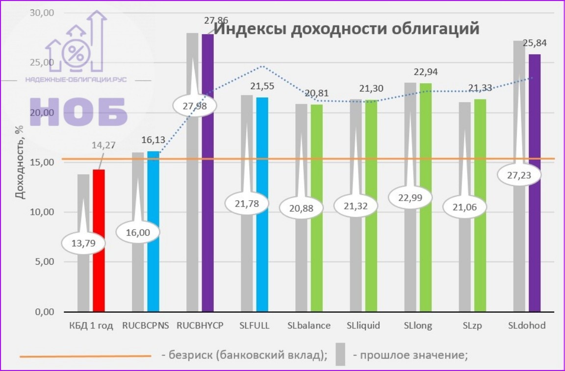 ✅ Максимальная процентная ставка по вкладам, публикуемая Банком России, 15,1% на первую декаду января, снижение есть; ✅ Индекс ОФЗ (КБД публикуется на сайте Мосбиржи) с дюрацией 1 год (КБД 1 год на графике👆) - рост почти на полпроцента; ✅ Индекс корпоративных облигаций RUCBCPNS (публикуется на сайте Мосбиржи) - почти без изменений; ✅ Индекс высокодоходных облигаций RUCBHYCP (публикуется на сайте Мосбиржи) - без изменений; 📌 Индекс полной доходности Списка Лучших облигаций 2025 SLFULL без существенных изменений. В Список вошло 59 облигаций вместо 61 ранее, при этом общий порог входа по YTM не менялся. ✅ Индекс SLbalance портфеля СБАЛАНСИРОВАННЫЙ - без изменений; ✅ Доходность ликвидной части Списка SLliquid - без изенений; ✅ Индекс портфеля ДОЛГОСРОЧНЫЙ SLlong - без изменений; ✅ Индекс облигаций с ежемесячным купоном SLzp - без изменений; ✅ Портфель ДОХОДНЫЙ (индекс SLdohod) - незначительное снижение. Как формируются индексы (ссылка активна). Состав портфелей обновлённого Списка лучших