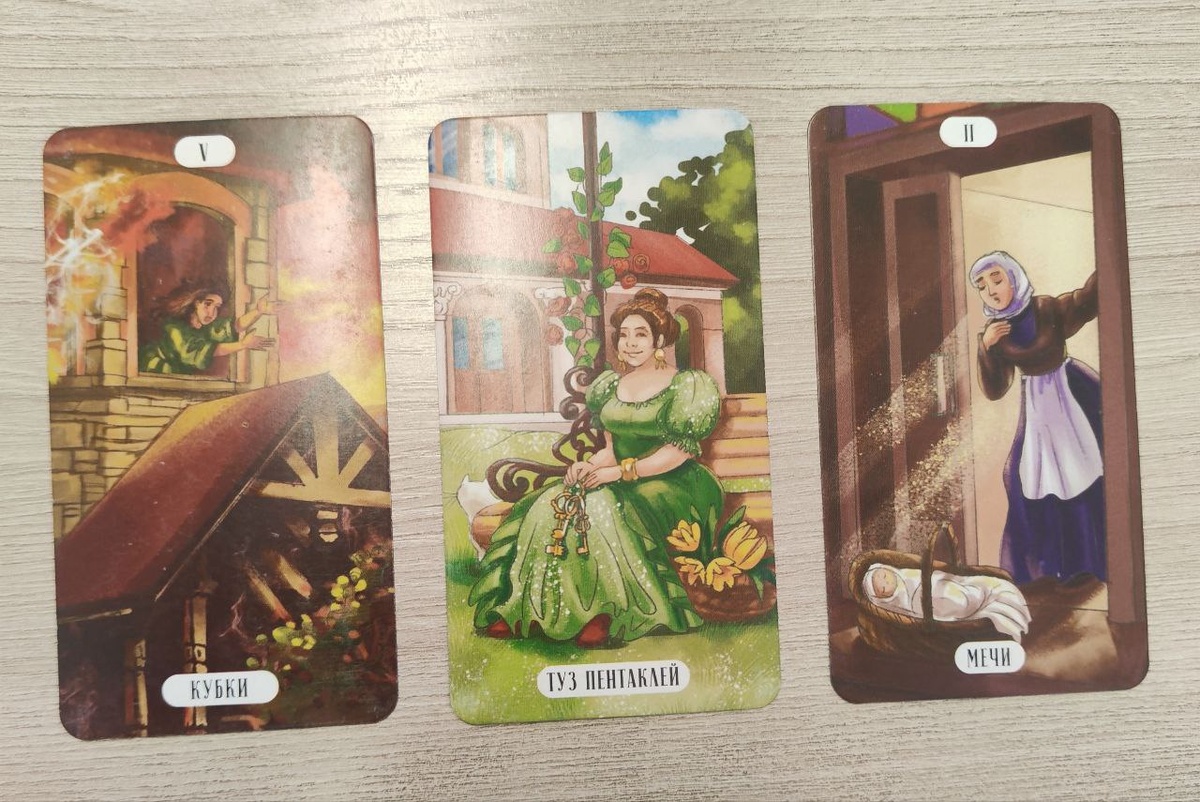 перед нами открывается множество дверей, каждая из которых ведёт к уникальным перспективам. Давайте подробно разберём каждую карту и увидим, как они влияют на наш сегодняшний путь. 1 карта. Пятёрка Кубков 🍷 Эта карта часто ассоциируется с потерей и разочарованием, но она также напоминает о том, что из каждой ситуации можно извлечь урок. Пятёрка Кубков показывает, что, несмотря на горечь утрат, важно не зацикливаться на негативе, а обратить внимание на то, что доступно, часто мы не замечаем возможности, которые совсем рядом. Положительные стороны: Эта карта может служить напоминанием о том, что даже в трудные времена есть возможность начать заново. Сегодня вы можете столкнуться с ситуацией, которая заставит вас переосмыслить свои эмоции и научиться отпускать то, что не приносит радости. Отрицательные стороны: Опасность застрять в сожалениях и не видеть возможностей, которые открываются перед вами. Будьте внимательны к своим мыслям, чтобы не дать им затмить позитивные моменты. 2 карта