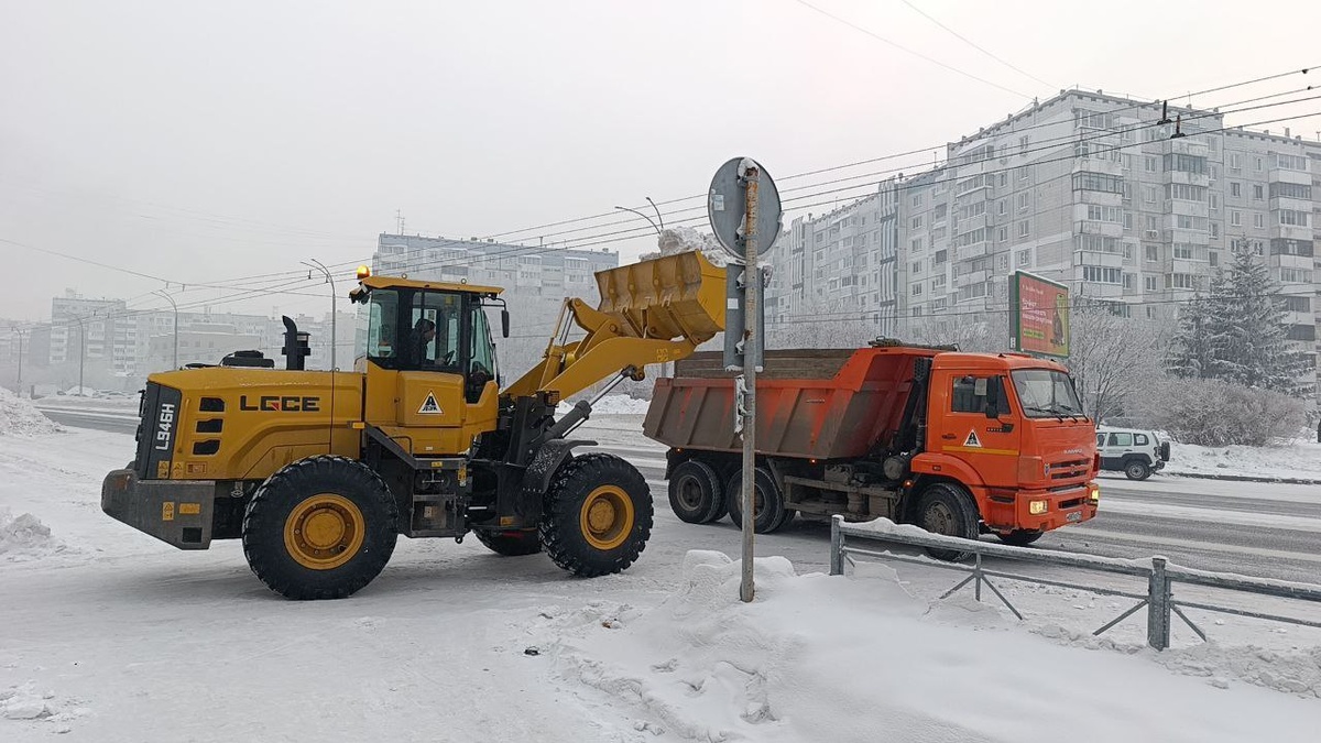 Предприятия предоставляют самосвалы и фронтальные погрузчики. Сегодня вывозят снег с пр. Молодежный, ул. Институтская от ул. Терешковой до бульвара имени академика Леонида Барбараша, ул. Терешковой; в ж.р. Лесная поляна на ул. Молодежная, ул. Изумрудная, ул. Щегловская, ул. Медовая, просп. Весенний, ул. Окружная, ул. Утренняя. Фото: Кемдор, Антон Мелентьев | @gazetakemerovo ❤️ Наш канал в Дзен