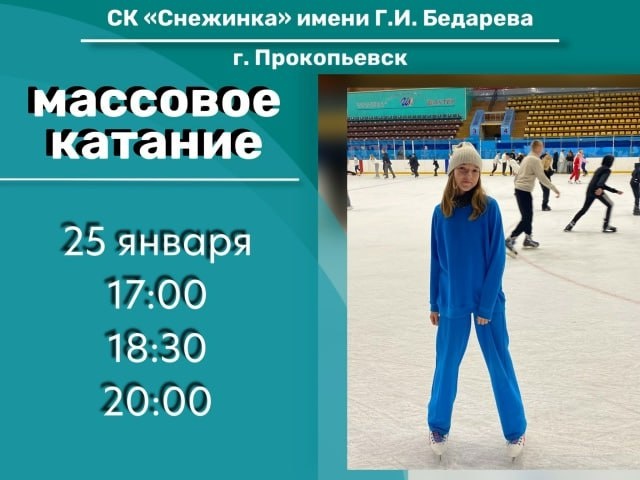 В Татьянин день прокопчан приглашают на лёд СК Снежинка. Массовое катание на коньках состоится 25 января в 17:00, 18:30, 20:00. ПОДПИШИСЬ 🔴 ПРЕДЛОЖИ Ⓜ МАХ НАШ