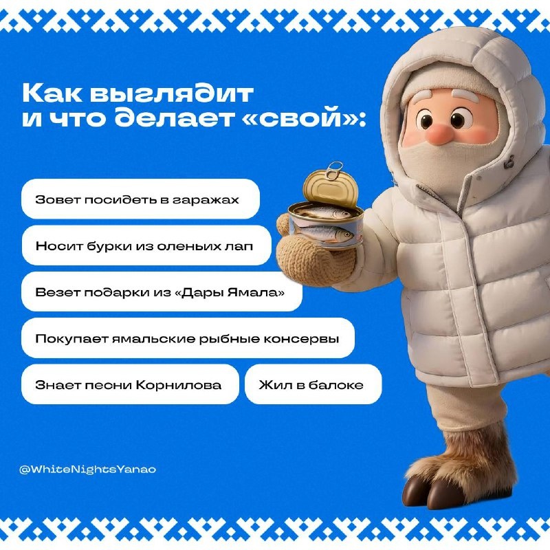 «Жил в балоке, покупает консервы, поезд у него — бич»: ямальцы назвали слова, фразы и внешность истинного «своего» северянина. Об этом они рассказали в нашем опросе, а вот и его результаты⬆ Подписаться | Прислать новость | Мы в MAX