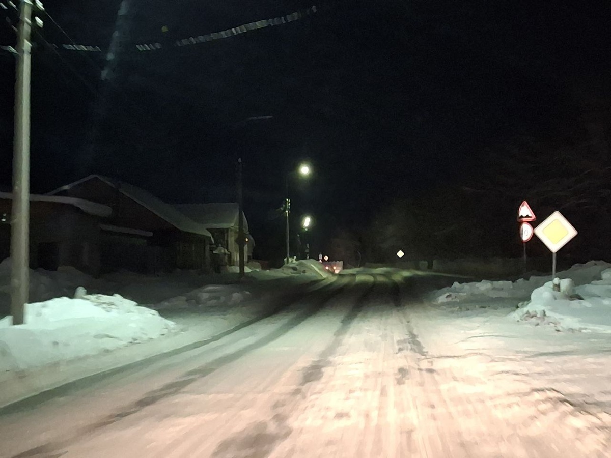 Подровняли. Дорогу в центре, у заправки. Но ехать все же надо осторожно: скользко.