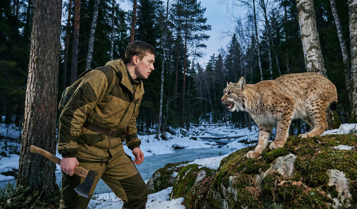 Увидев человека, рысь сделала отчаянную попытку вскочить. Глаза зверя — два горящих желтых угля с вертикальными зрачками — вспыхнули такой дикой, первобытной ненавистью, что Алексей невольно отшатнулся. Зверь оскалился, обнажив белоснежные клыки, издал шипящий, вибрирующий рык, но силы тут же покинули его. Лапы подогнулись, и хищник снова тяжело рухнул на снег, не сводя с Алексея тяжелого, немигающего взгляда. Он был крайне истощен. Судя по следам борьбы и количеству утоптанного снега, он провел в этом железном плену не меньше двух суток, медленно замерзая и истекая кровью.
