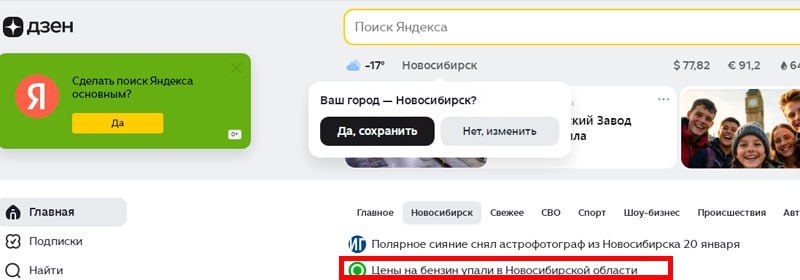 Сразу несколько СМИ выпустили заметки о том, что «цены на бензин упали» в Новосибирской области, и сформировали сюжет в «Дзене», который пользователи видят, когда заходят на главную страницу сайта. Они ссылаются на пресс-релиз Новосибирскстата об уровне цен в декабре 2025 года по сравнению с ноябрём. Но, по официальным данным того же Новосибирскстата, в начале январе цены на топливо выросли почти на 50 копеек, обратил внимание «Сибирский экспресс». Средняя цена литра АИ-92 в регионе, по данным на 12 января 2026 года, составила 59,22 рубля, АИ-95 — 63,18 рубля, АИ-98 — 84,56. Тогда как 22 декабря 2025-го литр АИ-92 стоил в среднем 58,76 рубля, АИ-95 — 62,73 рубля, АИ-98 — 84,31 рубля. Реальные цены на некоторых заправках ещё выше, свидетельствует сервис Benzine Price, который мониторит розничную стоимость топлива. Например, АИ-92 на трёх АЗС «Роснефти» в Новосибирске и двух в районах области уже дороже 60 рублей. АИ-95 продают на разных заправках в районе 64 рублей за литр. Подписат