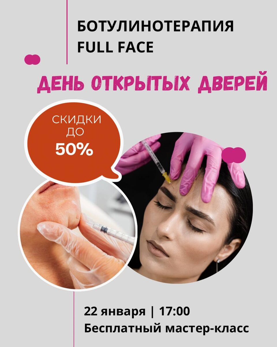 ! 💣 БОТУЛИНОТЕРАПИЯ в технике Full Face 📅 22 января в 17:00 ждем вас на нашем мероприятии с невероятными скидками на ВСЕ курсы обучения! 💫35% на длительные, краткосрочные и дистанционные курсы 💫50%- на краткосрочные, при покупке двух курсов 💫50% по теме мастер-класса Фулл Фейс препаратами ботулотоксина, нейромезолифтинг, ботулинотерапия для слушателей со средним и высшим мед образованием 💫Бонус для гостей: Бесплатный мастер-класс «Популярная техника Full Face при работе с инъекциями ботулинического токсина типа А 📌 Программа Дня открытых дверей: ✔ Презентация программ обучения ✔ Карьерный консалтинг ✔ Мастер-класс 💯 И конечно: фуршет и возможность получить скидки! ☝🏻Вход только по предварительной записи! 📲 Запись и вопросы ➡️ в комментарии и лс 👉🏻 Не можете присутствовать? Оставьте контакт, и наш менеджер поможет вам выбрать курс и оформить заявку. 🌟 Станьте профессионалом в бьюти-сфере с максимальной выгодой 🔥 Ждем вас!🔥