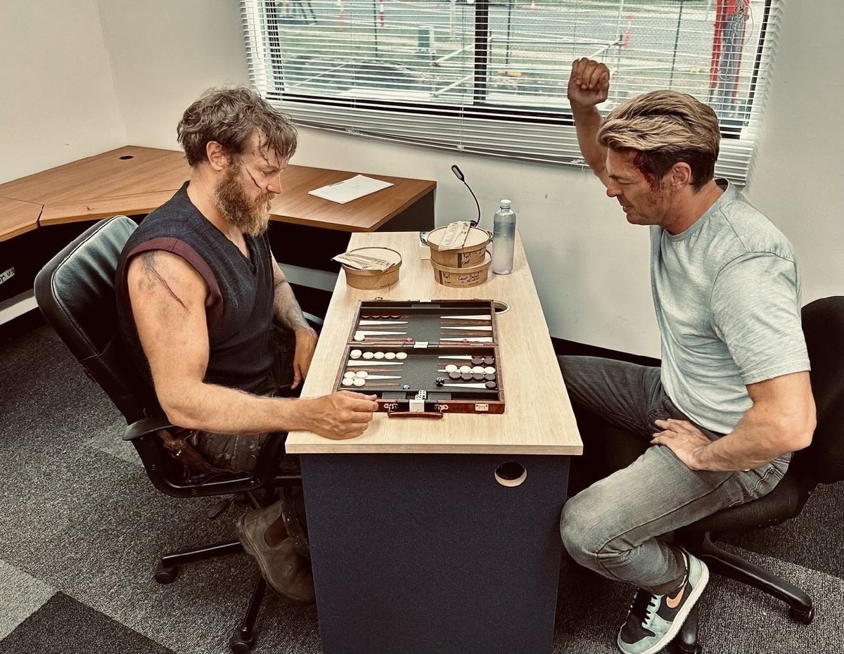 Ничего необычного, просто актеры Кано и Джонни Кейджа со съемок Mortal Kombat 2 рубятся в нарды...