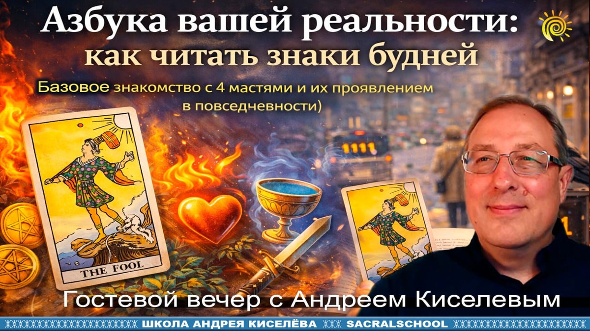 Вы понимаете его язык? Обращали внимание, как обычный день может дать чёткий ответ? Утренний звонок, случайная фраза коллеги, вспышка инсайта в пробке — это не совпадения. Это знаки. Но как их расшифровать? Всё просто: реальность говорит на языке 4 мастей Таро. И вы уже встречали их сегодня😎: ☺️ Жезлы — ваша энергия и идеи (утренний кофе, новый проект) ☺️ Кубки — эмоции и чувства (нежность к близким, внезапная грусть) ☺️ Мечи — мысли и слова (важный разговор, спор, решение) ☺️ Пентакли — материя и ресурсы (деньги, дом, тело) На гостевом «Азбука вашей реальности» я научу вас читать эти знаки. Вы узнаете: ✅ Как отличить тревогу от интуиции ✅ Как понять, что день пытается вам сказать ✅ Как применять мудрость Таро без гаданий — просто как язык для диалога с жизнью Встречаемся сегодня в 18:00 (МСК)! 👉 Ссылка на вход повиятся здесь за несколько минут перед началом P.S. Приходите даже без карт — нужны только внимание и желание понимать больше. А после вебинара обычный понедельн
