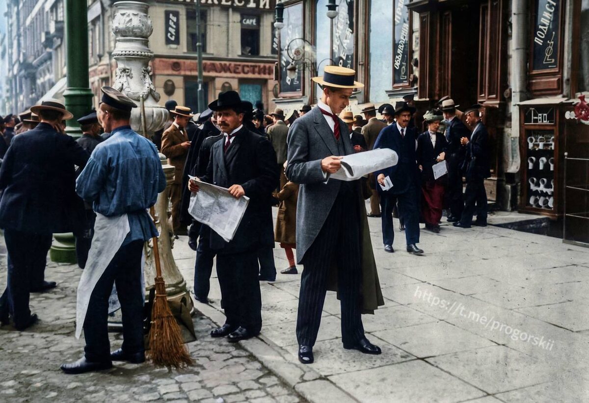 1914. В день объявления войны у редакции газеты "Вечернее время" - Санкт-Петербург