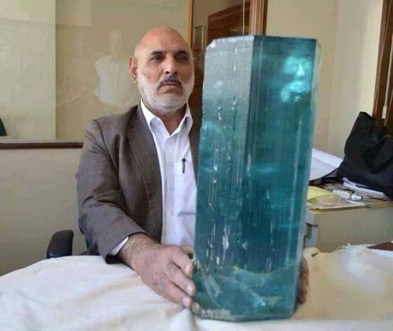 Название «аквамарин» происходит от латинского «aqua marina», что означает «морская вода». Меняет оттенок под разным углом освещения. Со временем камень может выцветать под воздействием ультрафиолета. Министр шахт и нефти Афганистана Гуль Ага Ишакзай демонстрирует исполинский шестигранный призматический кристалл аквамарина, найденный в одной из горных выработок афганского Бадахшана. Телеграм: https://dzen.ru/id/651983a11cf2387b25169947