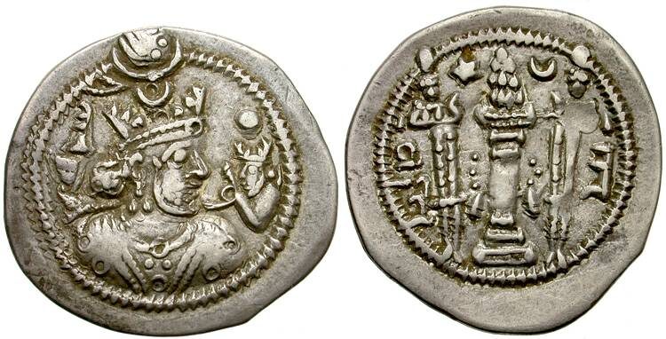 Как и при Валкаше, на некоторых драхмах украшение на лбу изображено в виде небольшого кольца, соединяющего два ряда жемчужин диадемы.