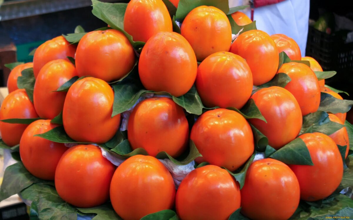 Спелая хурма — мягкая, с тонкой, почти прозрачной кожицей, тёмными листьями у плодоножки и насыщенным ароматом. Она не должна быть мятой или с тёмными пятнами — это признаки перезревания.