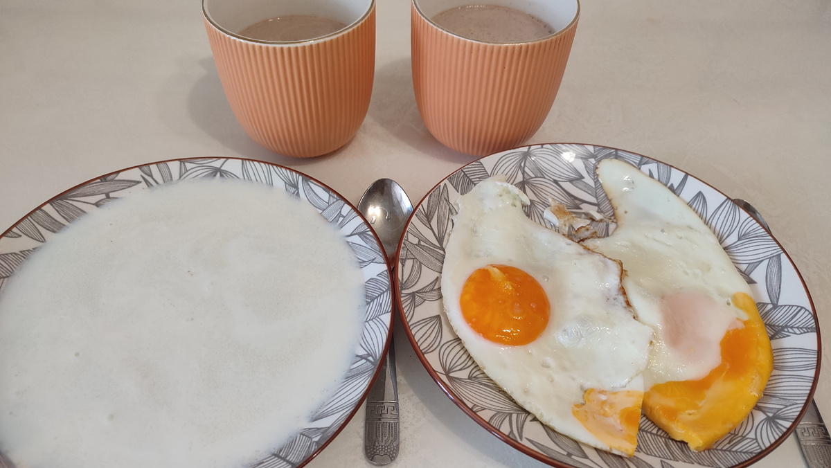 Завтрака как такового не было. Сын утром сказал, что пока не хочет. А сама я пила кофе. У нас будет завтрак-обед.