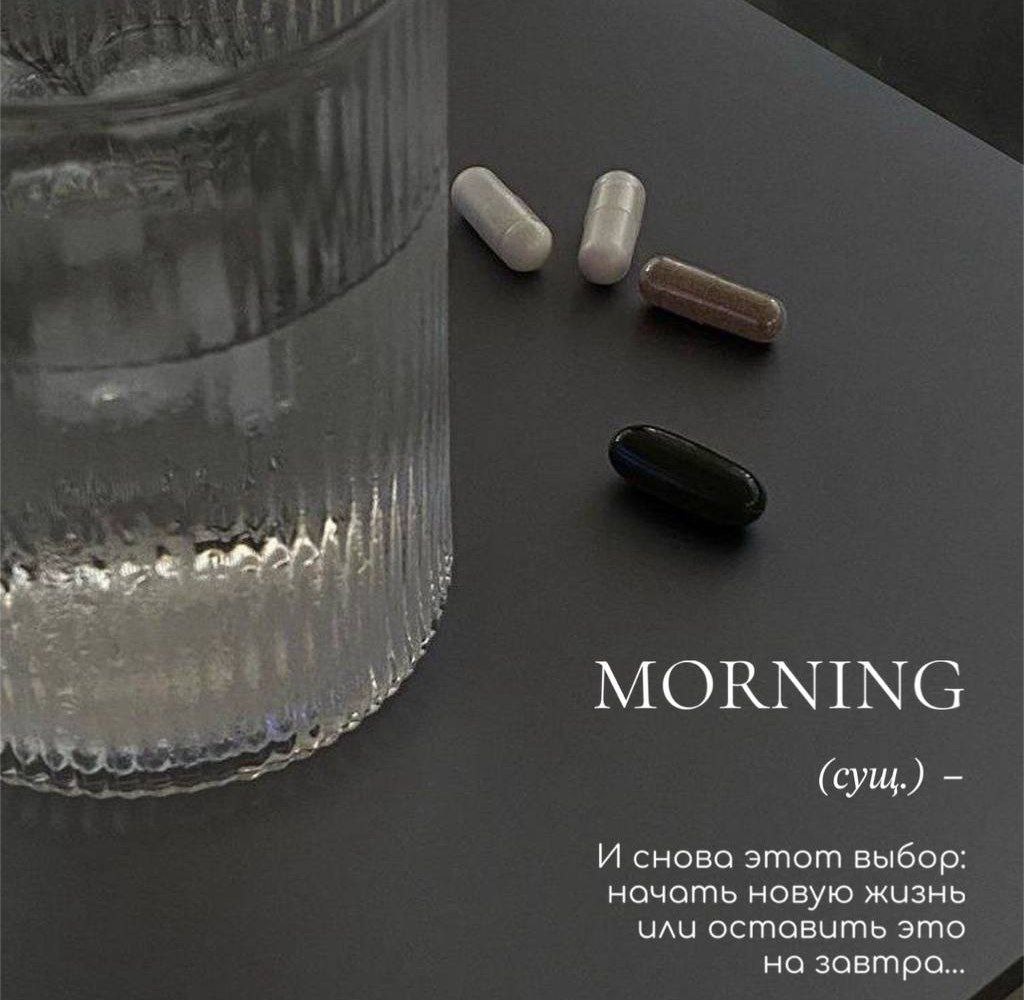 Я выбираю стать лучшей версией себя, вот водичка с утра и витамины)